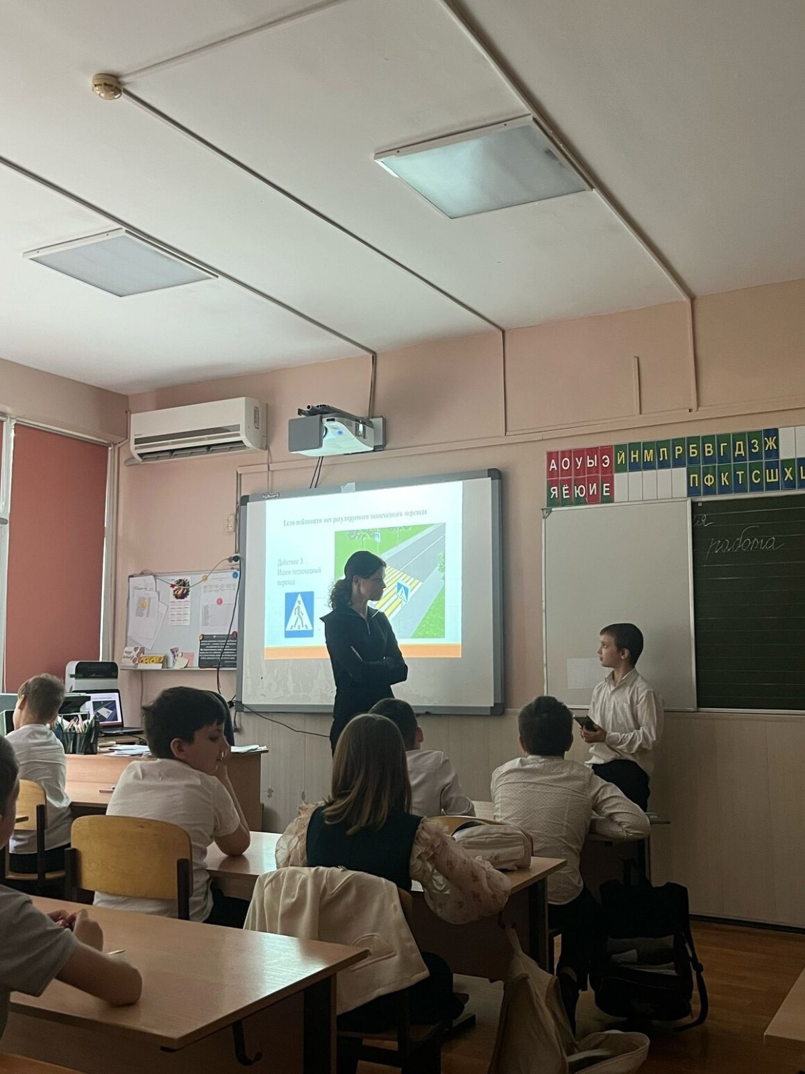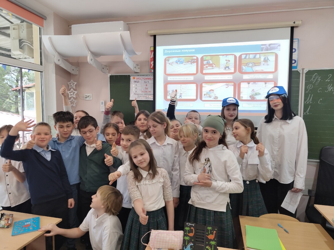Сегодня сотрудники Центра безопасности дорожного движения совместно со студентами Института транспорта и сервиса провели увлекательное интерактивное занятие для учащихся третьих классов МОБУ гимназии № 44 под названием «Будь в теме: соблюдай ПДД!».
