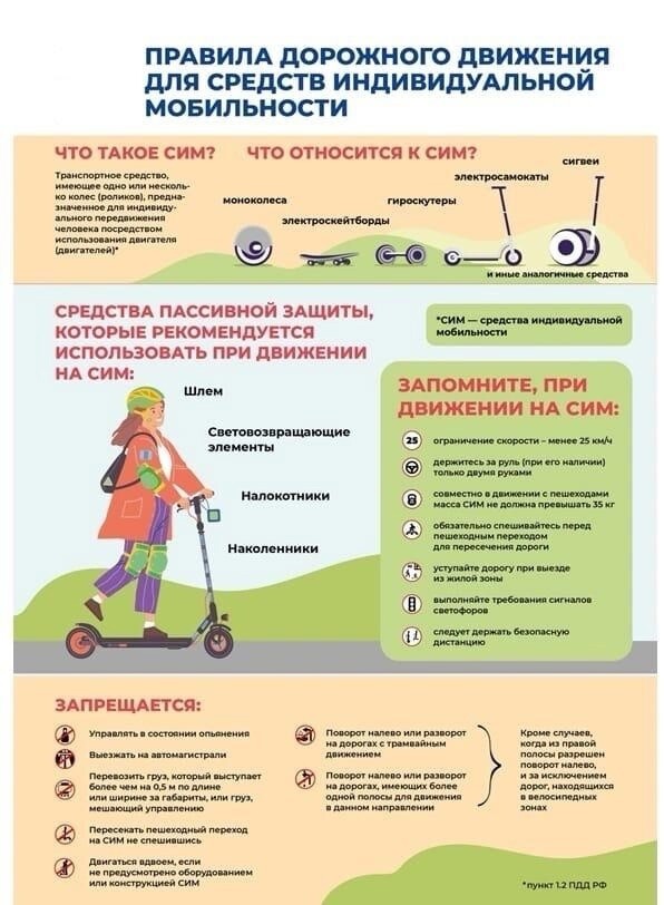 Согласно пункту 1.2 Правил дорожного движения РФ, средства индивидуальной мобильности – это транспортное средство, имеющее одно или несколько колес (роликов), предназначенное для индивидуального передвижения человека посредством использования двигателя (двигателей).